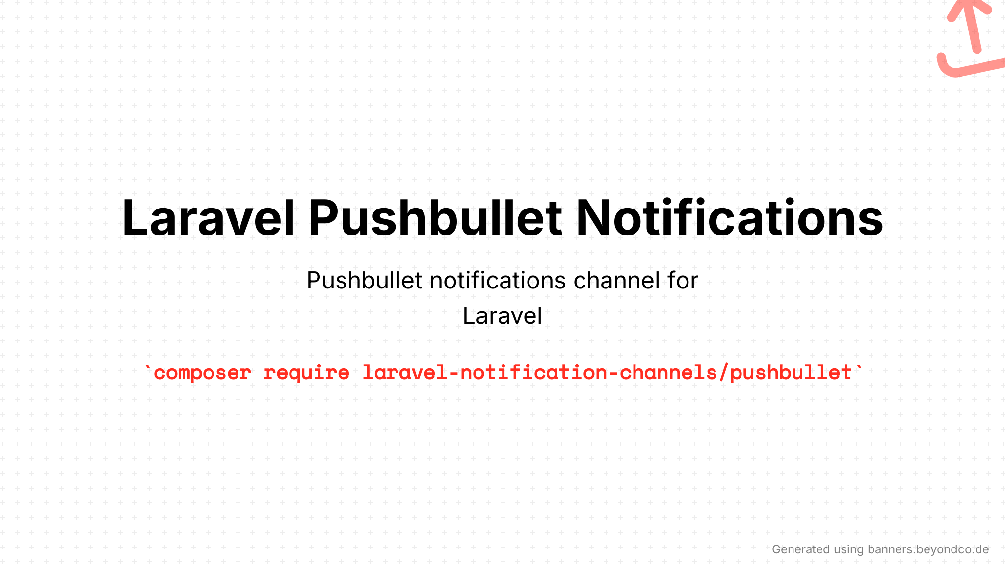 This package makes it easy to send notifications using Pushbullet (opens new window) with Laravel 5.5+, 6.x, 7.x and 8.x.